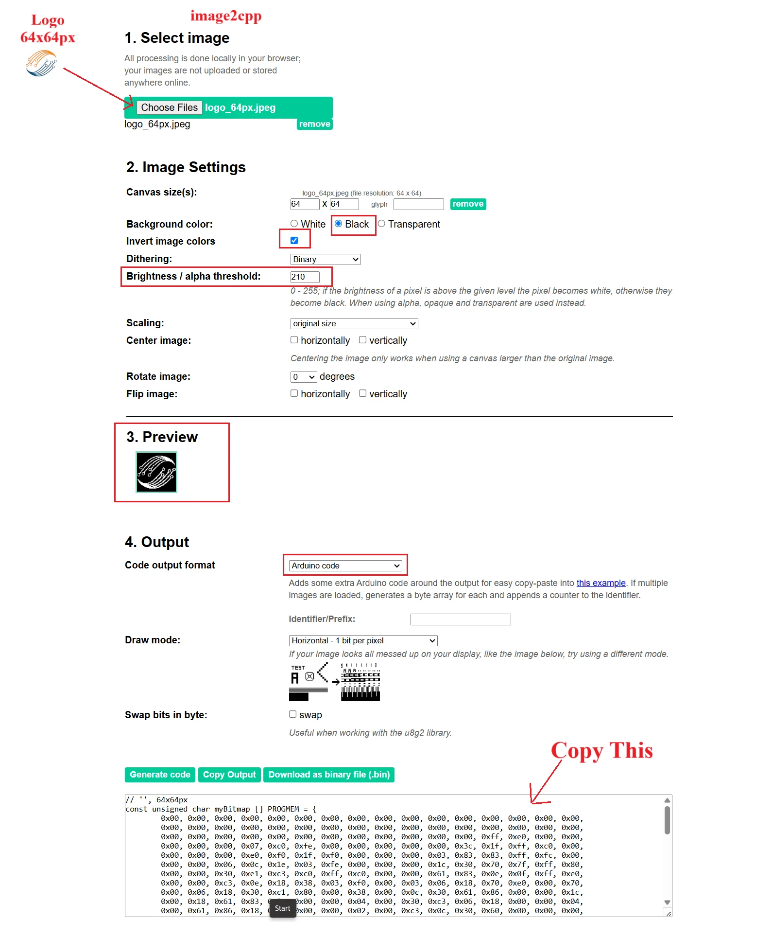 To display any custom animation, you first need to convert your images into bitmap arrays that Arduino can understand. Since the SSD1306 is a monochrome display, all images must be black and white.