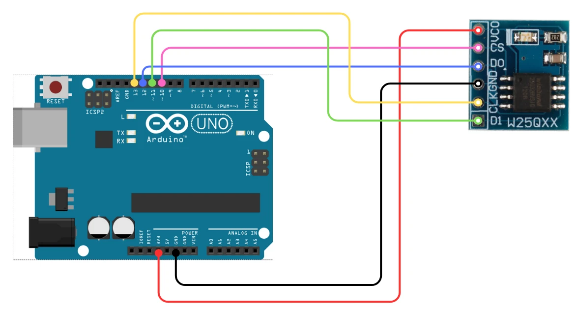 With the right SPI Flash library, it’s easy to integrate and control W25Q Flash using just a few lines of Arduino code.