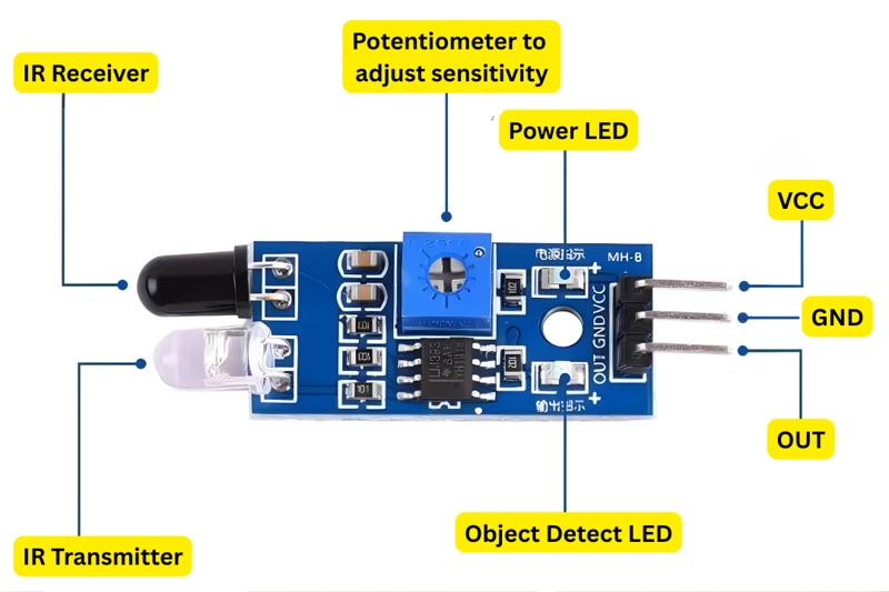 Connecting the IR sensor to an Arduino is very simple. The module usually has three pins: VCC, GND, and OUT.