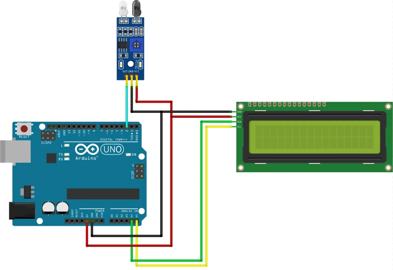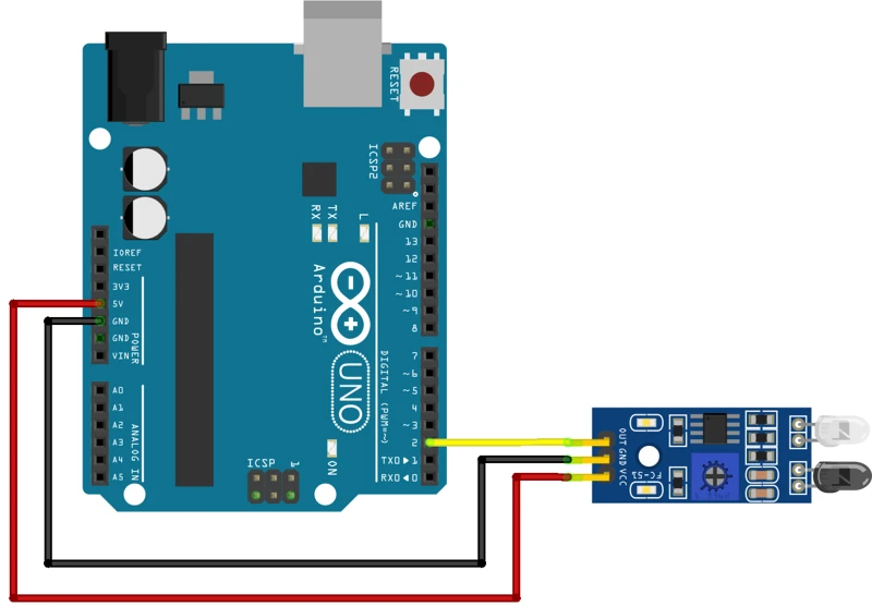 The image below shows the connection between Arduino Uno and IR sensor module.