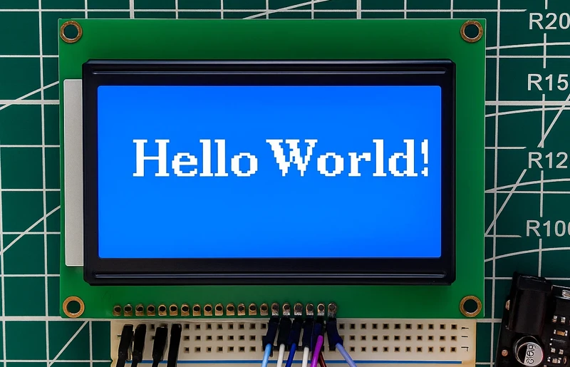 In this section, you will learn how to print text on the ST7920 using the U8g2 library. We will start by initializing the display, then show a simple “Hello World”, and finally explore different fonts, centered text, and multi-line layouts.