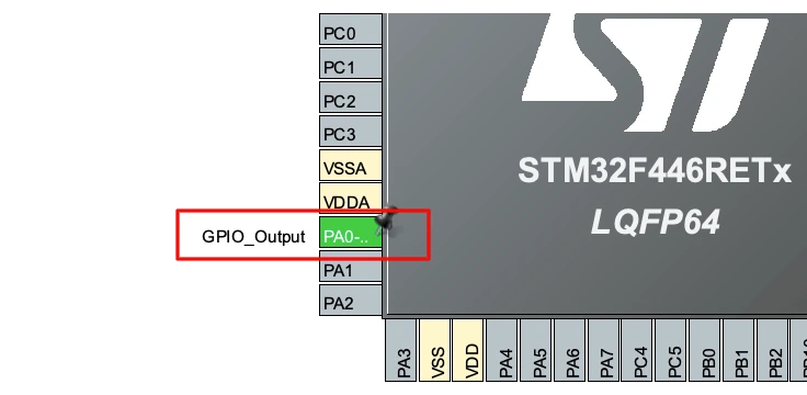 I am going to connect an LED to pin PA0. Hence the pin needs to be configured in the output mode.