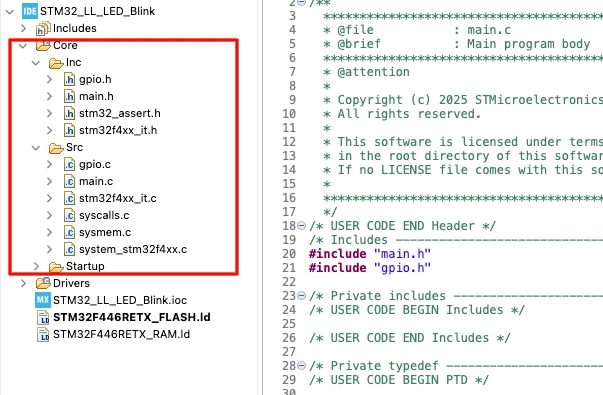This tutorial uses LL drivers so that you can understand what is actually happening inside the microcontroller when you configure GPIO or toggle a pin.