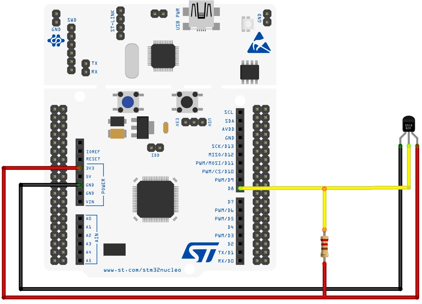 Below is the image showing the connection between the STM32 and the DS18B20 sensor.
