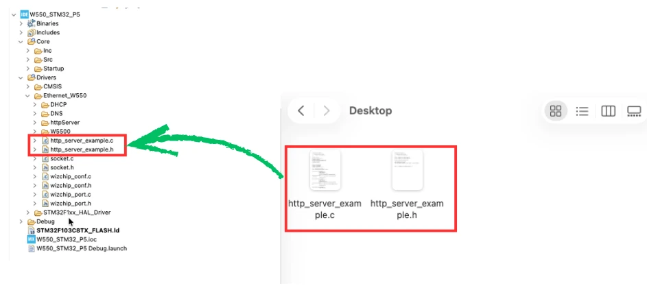 In this section, we will prepare all the files needed to run the HTTP server on STM32. The W5500 library already includes an HTTP server module, so we only need to add it to our project and make a few small adjustments. By the end of this section, your project will have all the required code to receive and process HTTP requests.