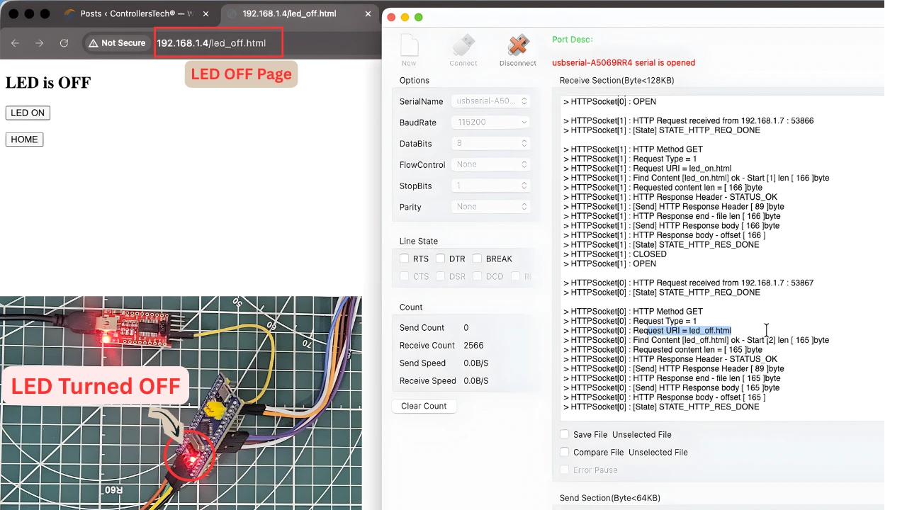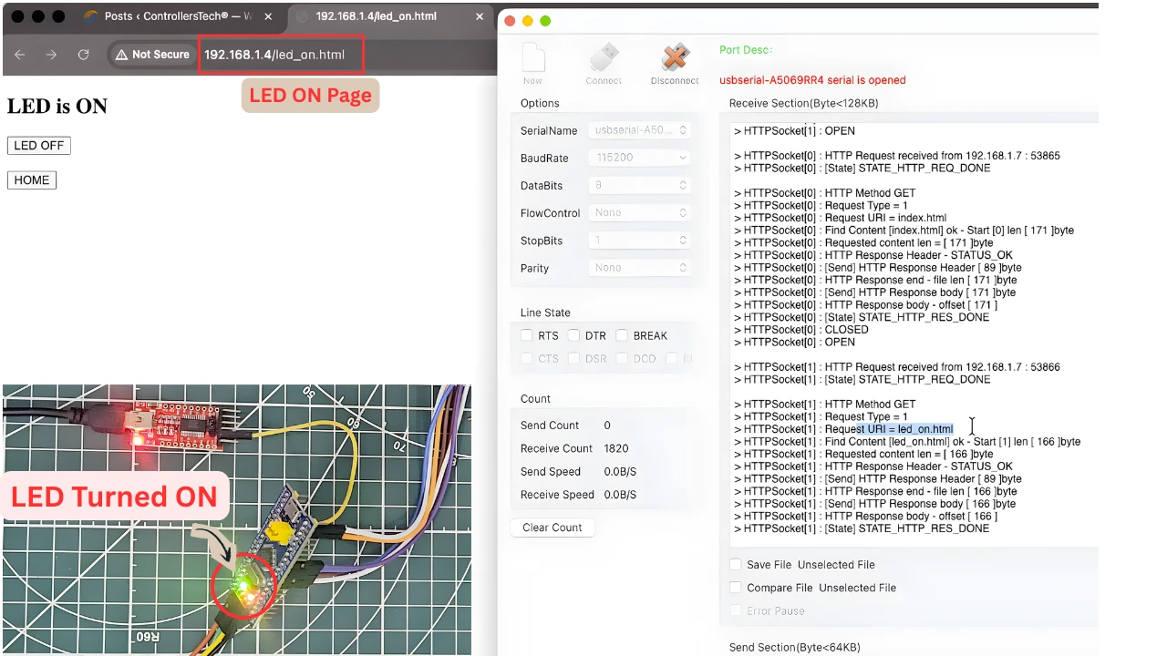 Once registered, the HTTP parser can match each incoming request to the correct page. This is what allows smooth navigation between pages and proper control of the LED through your browser.