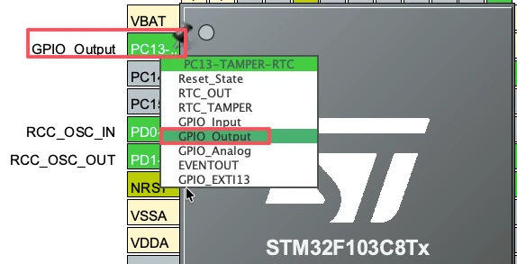 On the Bluepill (STM32F103) board, the onboard LED is connected to PC13. Configure it in the output mode.