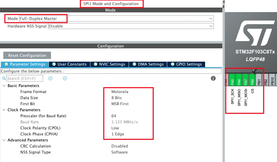 | MOSI | PA7 (SPI1 MOSI) |